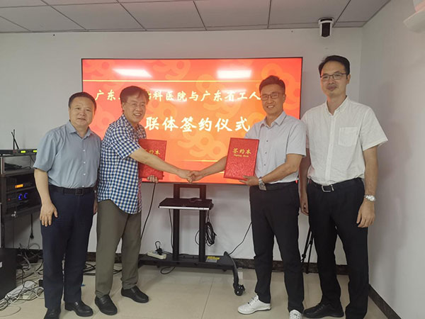 为加强医院之间的技术协作,增进学科间的学习交流,充分发挥双方医疗资源优势,8月6日广东省工人医院与广东三九脑科医院开展座谈并签署医联体合作协议。广东省工人医院党委书记、院长黄刚,党委副书记谢锐君,广东三九脑科医院院长朱丹,党委书记、副院长蔡林波以及双方相关科室负责人参加会议。